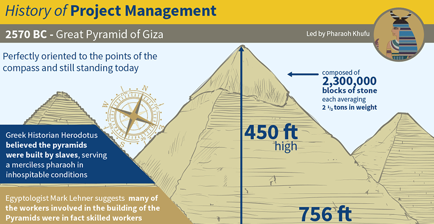 Project management has been practiced for thousands of years since the Egyptian era. And although the conditions in which the workers lived were horrible, the Great Pyramid of Giza is one of the oldest and most famous project management examples in history!