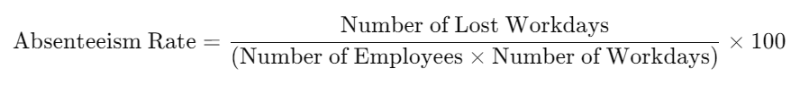 For example, if a company with 100 employees working 20 days a month loses 40 workdays due to absences, the absenteeism rate would be: