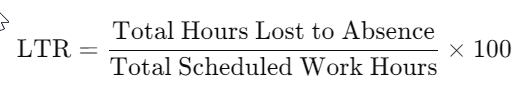 The Lost Time Rate (LTR) measures the percentage of total work time lost due to absences.