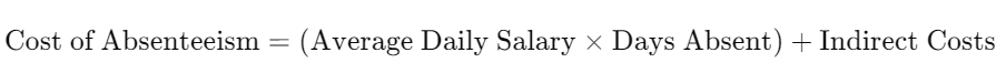 This metric attempts to quantify the financial impact of absenteeism on an organization. It includes direct costs (like sick pay) and indirect costs (such as lost productivity, overtime for other employees, and administrative costs).