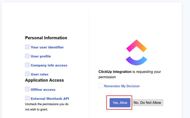 Congratulations, your Clickup integration with Monitask is ready!