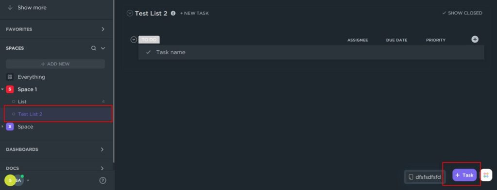 1) Browse ClickUp list and click Add new task