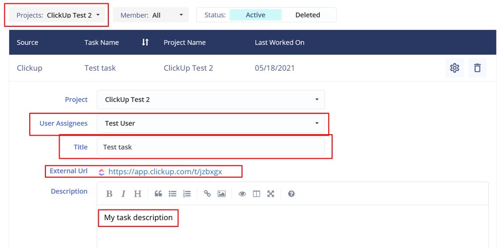 There he will be able to see that task source is ClickUp and task description