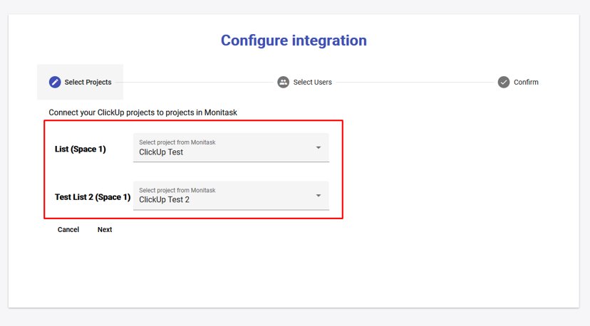 Notes: No changes to the tasks in the Monitask will be transferred to the ClickUp