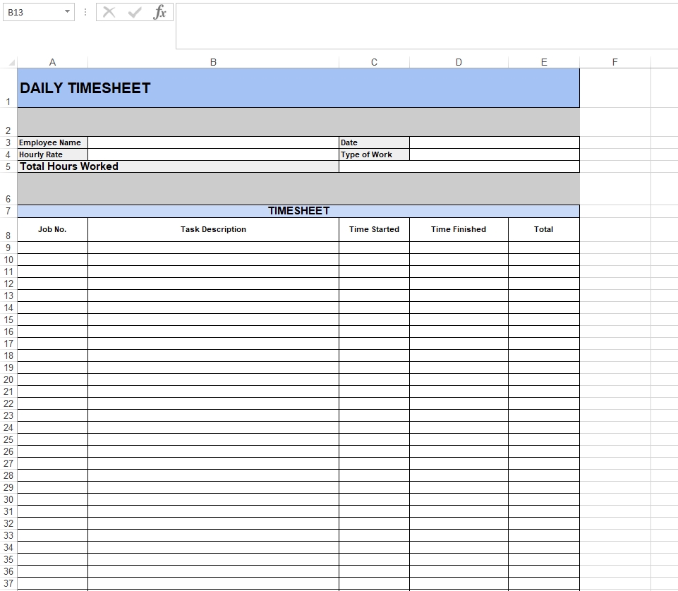 Daily Timesheet Template For Excel (.Xlsx)