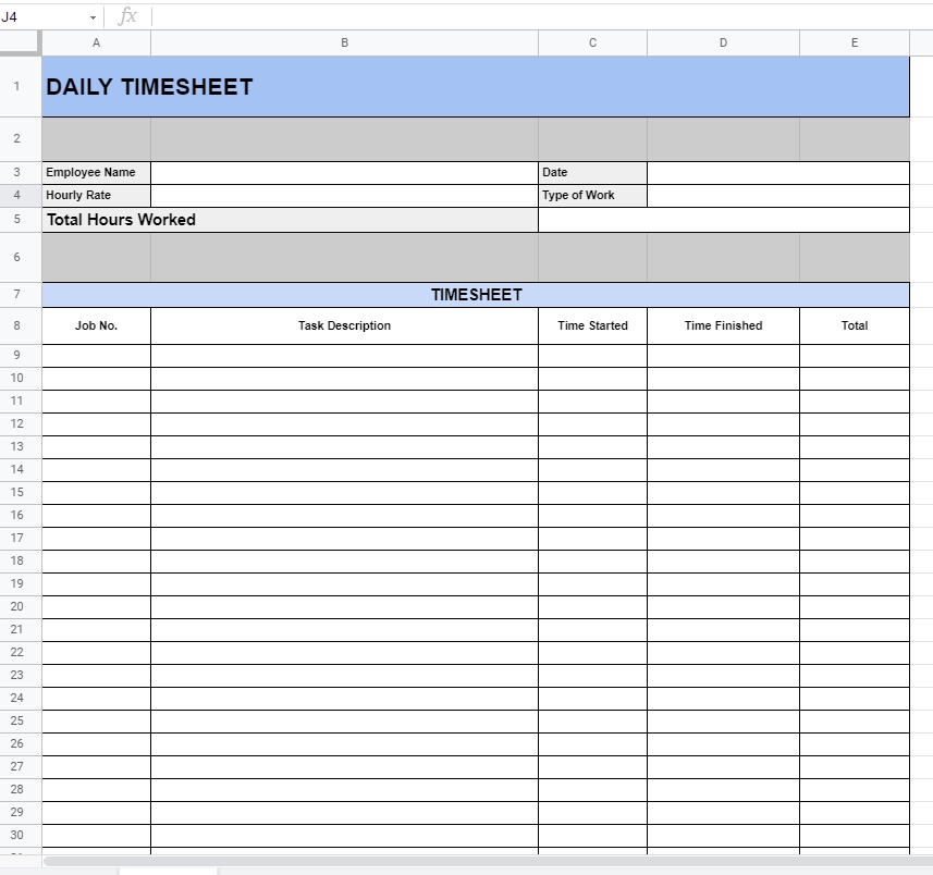 Daily Timesheet Template For Google Sheets
