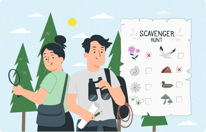 A scavenger hunt is a dynamic and interactive way to get your team moving, thinking, and collaborating. Whether in the office or outdoors, it promotes teamwork, problem-solving, and creativity. You can customize the hunt to fit any setting, making it adaptable for both small and large teams.