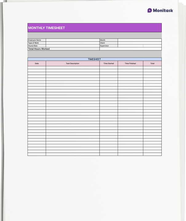 It’s a document used to track the hours worked by an employee on a monthly basis. It typically includes the date, start and end times, and any breaks taken. This information is used to calculate the employee’s pay and ensure they are being compensated accurately.