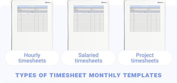 There are many monthly timesheet template free available online, including timesheets for hourly and salaried employees. It is important to choose the right free monthly timesheet template for your business. The most common monthly timesheet templates types are: