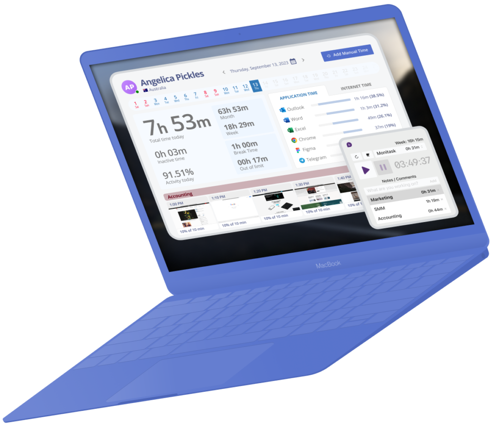 Monitask is a powerful tracking tool that enables companies to monitor their employees’ performance and increase productivity. Get comprehensive insight into how your employees spend their time, measure their efficiency and stay informed about their daily activities.