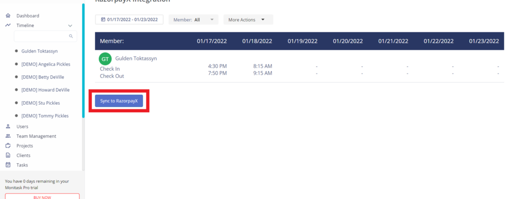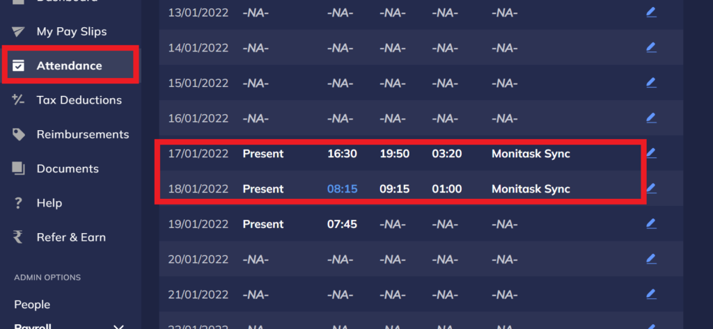 8) After all the steps you will see sheet will be integrated with your RazorpayX. You can see attendance in both Monitask and RazorpayX