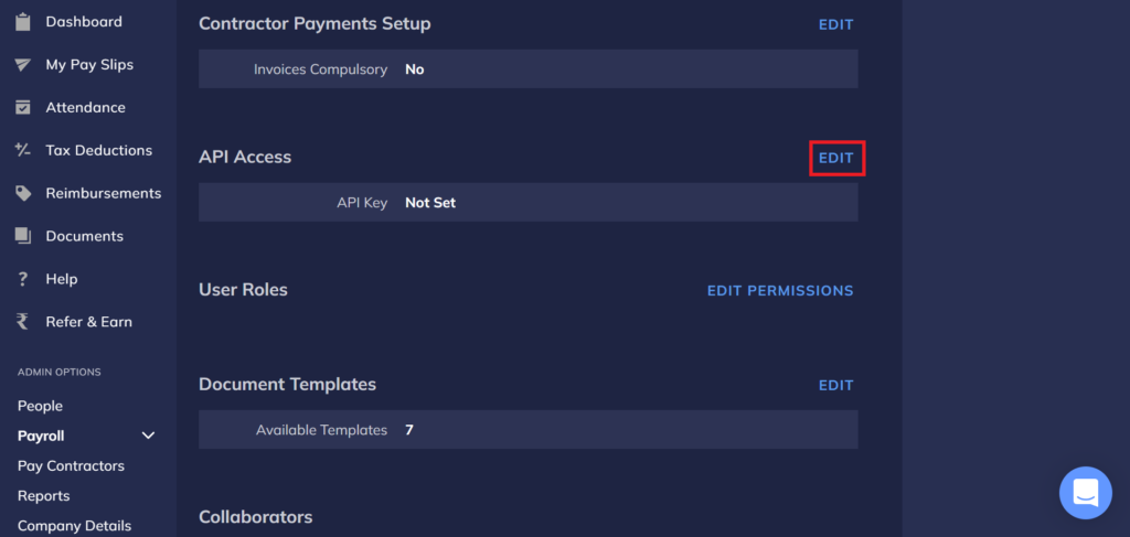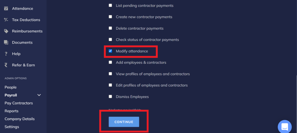 6) Open API Access in RazorpayX settings and give a permission to modify attendance.