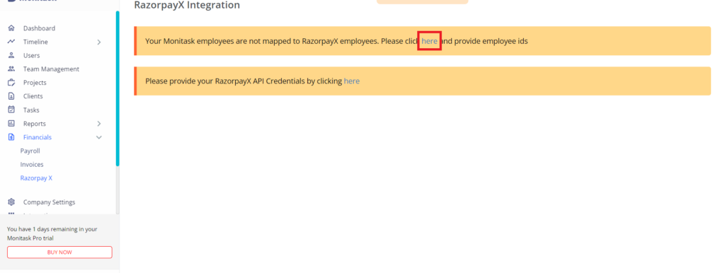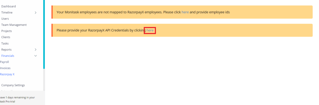RazorPayX integration with Monitask