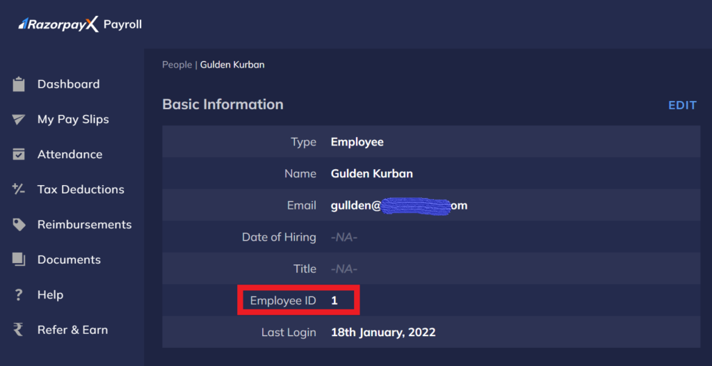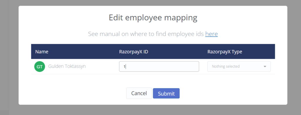 5) Open People on your RazorpayX menu and find needed employee’s ID and fill the form in Monitask