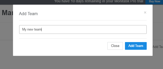 To do this, the administrator should navigate the team management page https://www.monitask.com/teammanagement and create a new team by clicking on the “Add Team” button: