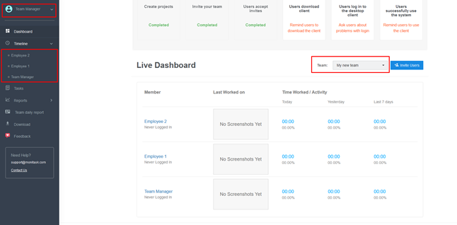 Now, the “Team Manager” can view screenshots and reports of assigned users