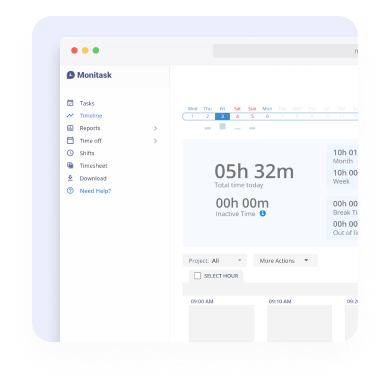Like no other tool, Monitask is the best time tracking software to help businesses effectively manage time to reach their goals. With the Monitask time tracking app, businesses can easily evaluate project progress and work completed to understand the time it takes to complete particular tasks. This helps managers identify and resolve any time-related issues before they become a problem.