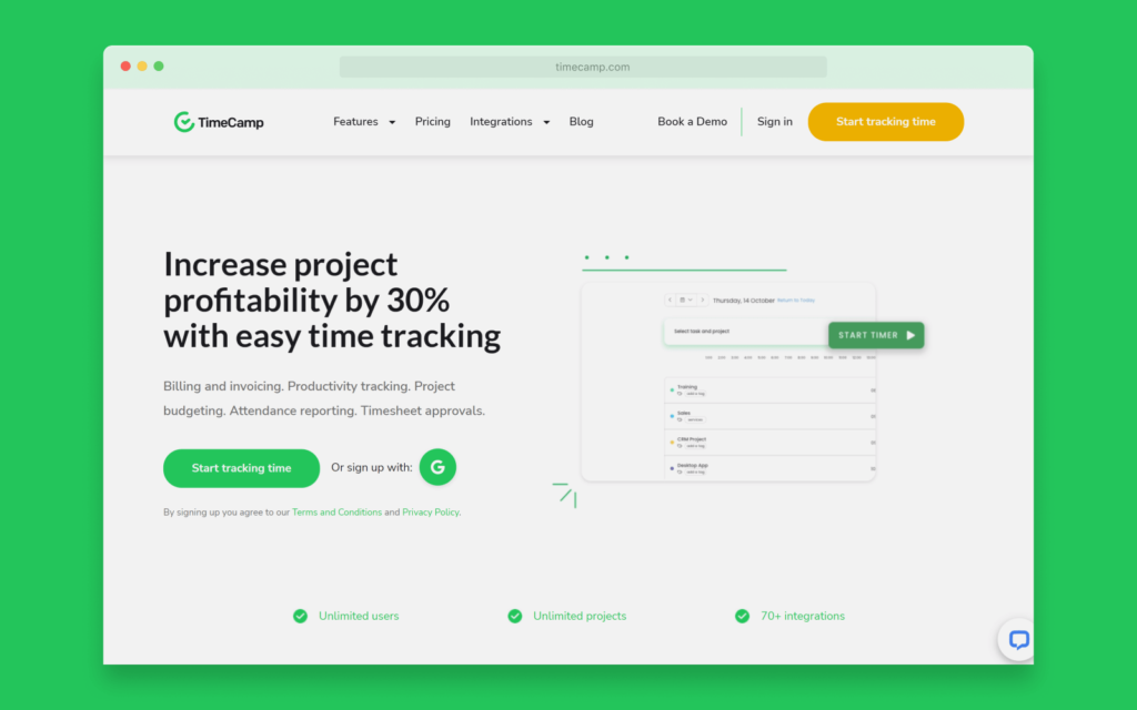 TimeCamp is a comprehensive software that can help businesses stay organized and maximize their productivity. This tool provides cloud-based software solutions, including time tracking, project management, budget tracking, and more.