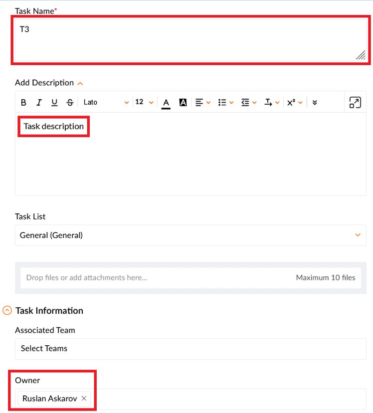 Browse Zoho project and click Create New Tasks