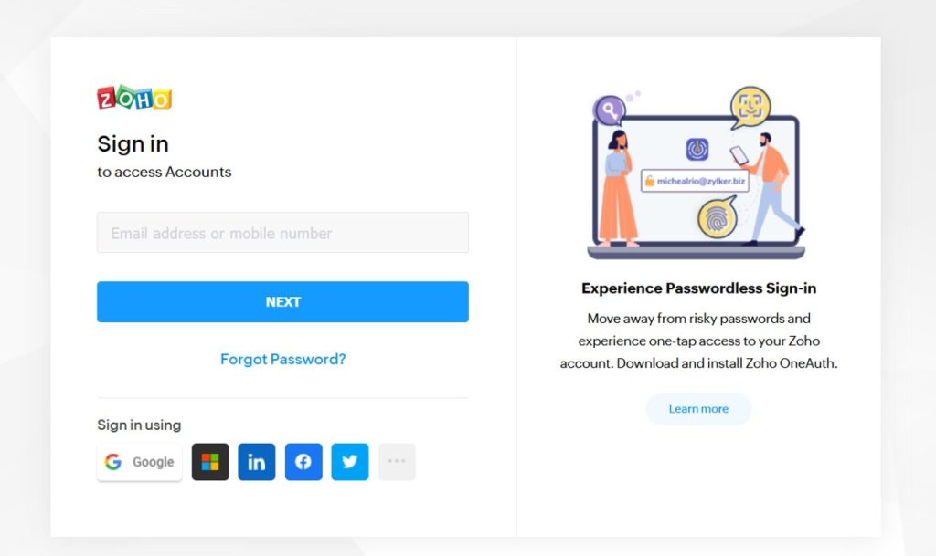 4) If you are not logged in Zoho you will be redirected to the login page