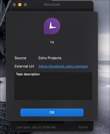 - If you create a new task or subtask in Zoho, it will automatically be created in Monitask in the web app and in the desktop application