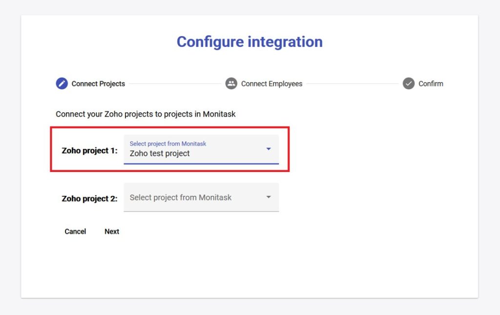 6) Map Zoho projects to projects in Monitask and click Next