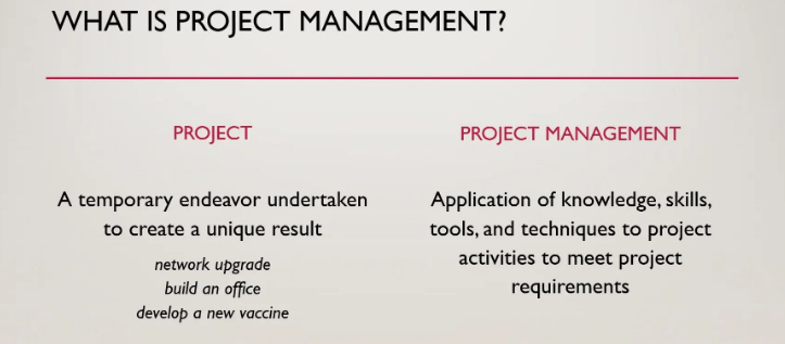 Project management is the process of planning, organizing, and controlling resources to achieve specific goals. While a project is a temporary endeavor with a defined beginning and end.