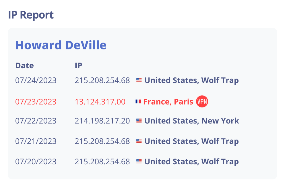 Enhance security. Track user locations with IP and VPN tracking, safeguarding data and ensuring compliance.