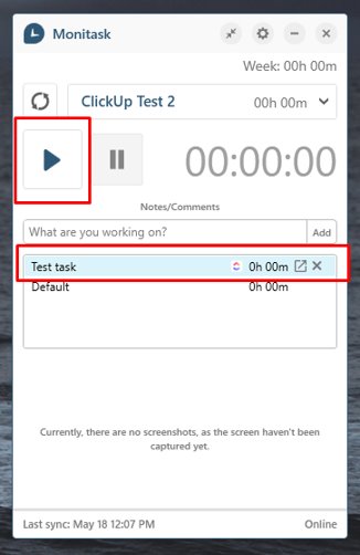 When user starts time tracking in the Monitask desktop application, we sync time to ClickUp after the first minute and then every 10 minutes. Also, time is synced each time user stops tracking (Clicks on the Pause button)
