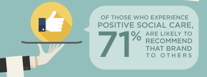 For example, according to Oberlo, 2018 71% of customers who engaged in a positive experience with a brand on social media are likely to recommend the brand to their friends and family.